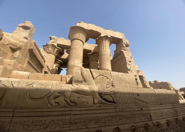 La visita al Tempio di Hours a Edfu, il piu` completo tempio e puro Greco . Poi si naviga verso Kom Ombo dove si visita il tempio tolemaico-romano di Kom Ombo e fu dedicato alle due divinita` Hours e Sobek, percio` ogni elemento architettonico e` rapresentato in due. Arrivo ad Aswan